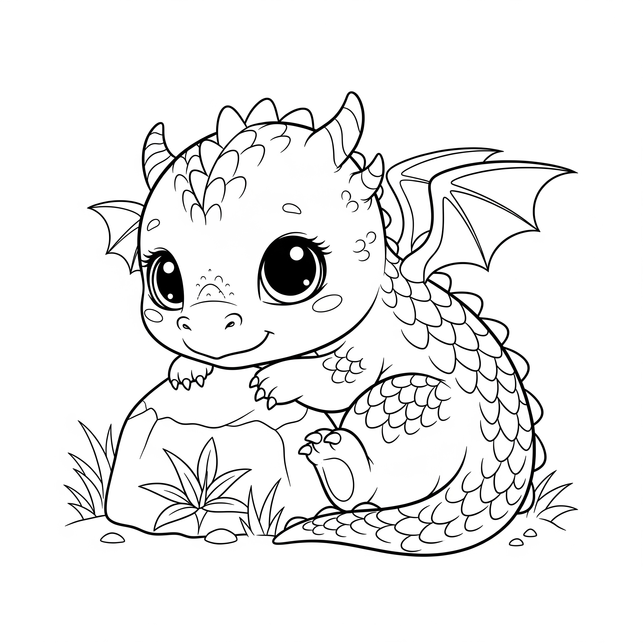 Spójrz na to słodkie dziecko smoka z wielkimi, przyjaznymi oczami! Siedzi obok kamienia, a jego malutkie skrzydełka i łuski czekają, aż tchniesz w nie życie swoimi ulubionymi kolorami. Czy będzie zielone, różowe, a może nadasz mu zupełnie fantazyjny wygląd, który wyróżni go w każdej bajkowej krainie?